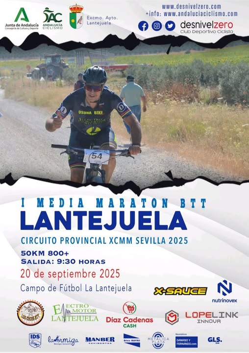 Con motivo de la celebración de la I Media Maratón BTT Lantejuela, el próximo sábado 20 de septiembre de 2025, se informa a los vecinos y vecinas: