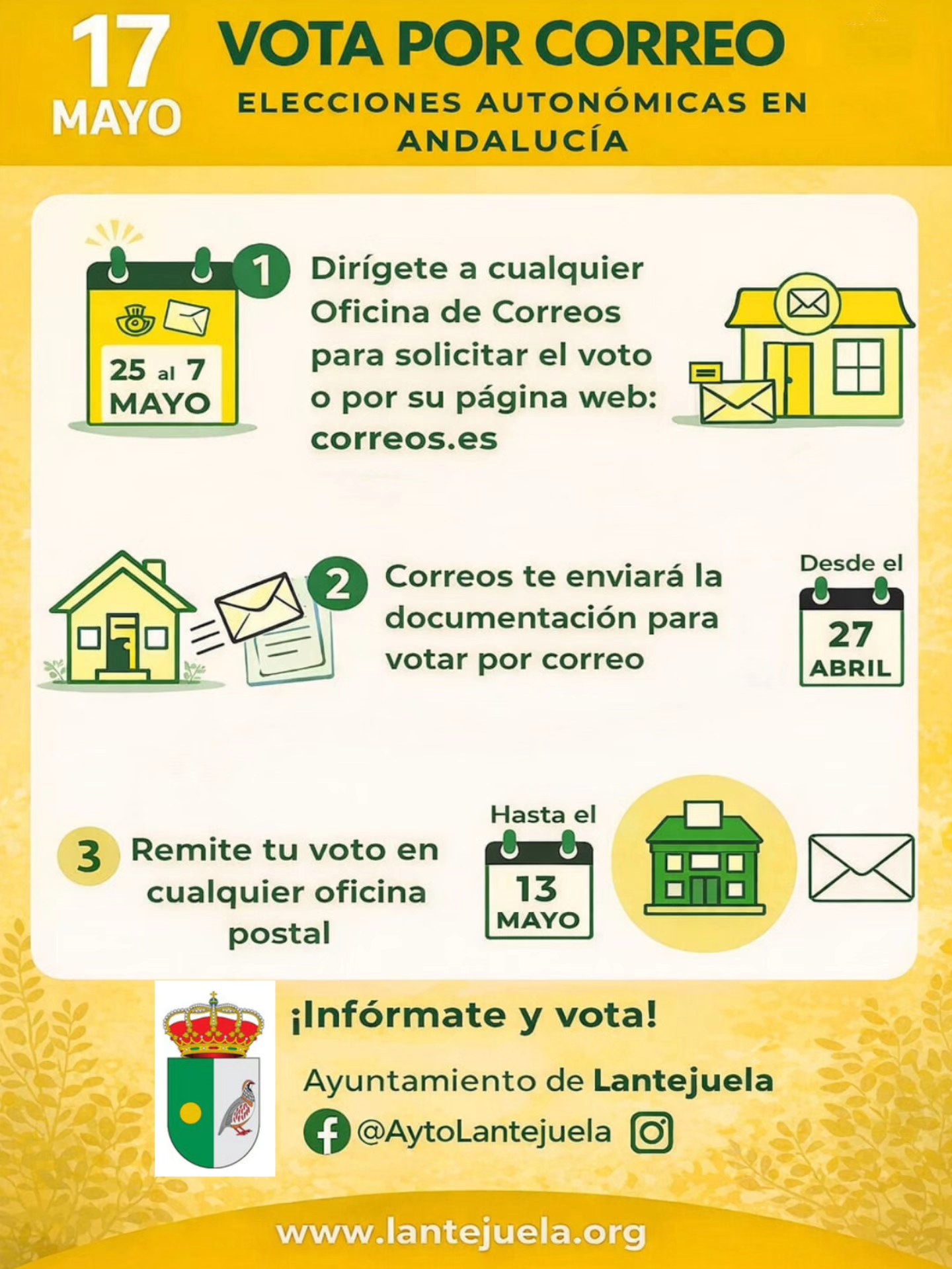 Ya puedes solicitar el voto por correo para las elecciones al Parlamento de Andalucía del 17 de mayo.
