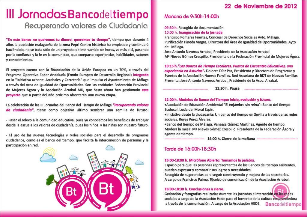 III Jornadas Banco del tiempo "Recuperando valores de la ciudadanía", que organizan el Bancodeltiempo Málaga, el Área de Igualdad del Ayuntamiento de Málaga.