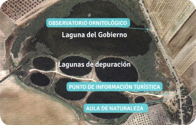 De entre las nueve lagunas, hay una que destaca por ser diferente: siempre tiene agua. Pero ¿cómo es posible si aquí en verano se secan el resto de lagunas y no hay ni gota?. Se debe a que la Laguna del Gobierno contiene las aguas residuales depuradas de Lantejuela.