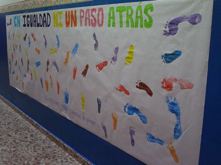 Ayer, el Punto de Igualdad Municipal realizó una pancarta con la leyenda “En Igualdad, ni un paso atrás”. C on motivo de la educación en igualdad desde la etapa infantil, surge la iniciativa, con los más peques del sector educativo, la escuela infantil La Cometa. La actividad ha consistido en la realización de una pancarta en la que los pequeños colocan la planta de los pies haciendo un camino hacia un futuro en igualdad.