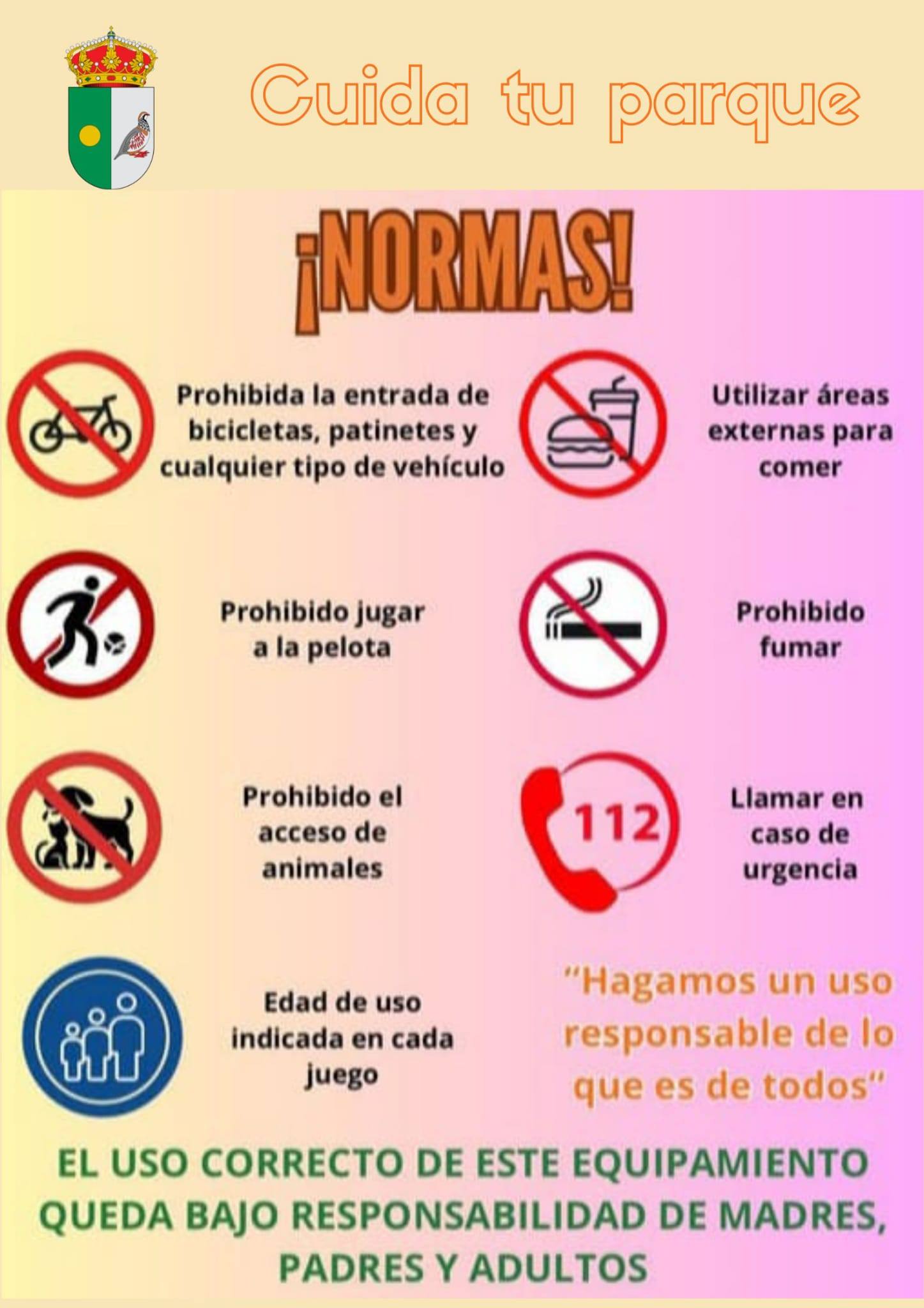 Por el bien y la seguridad de niños y niñas que disfrutan de los juegos en los parques infantiles, COLABORA.