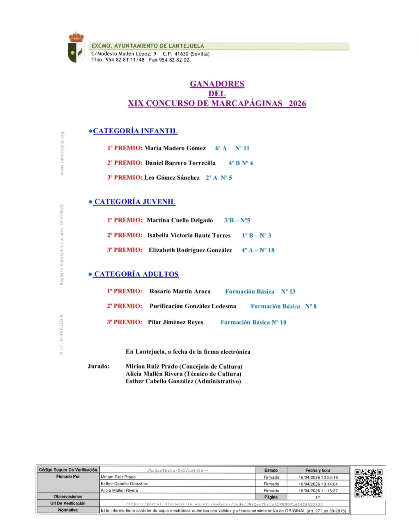 Además, el Concurso de Marcapáginas reconoce el talento y la creatividad de nuestros vecinos y vecinas.