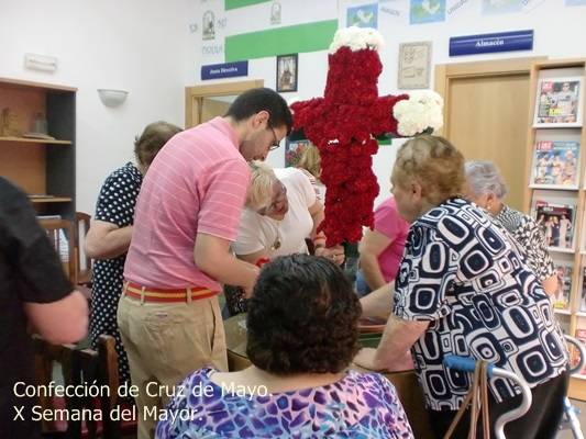 Elaboración de Cruz de Mayo por soci@s de la Asociación de la Tercera edad "La Esperanza"