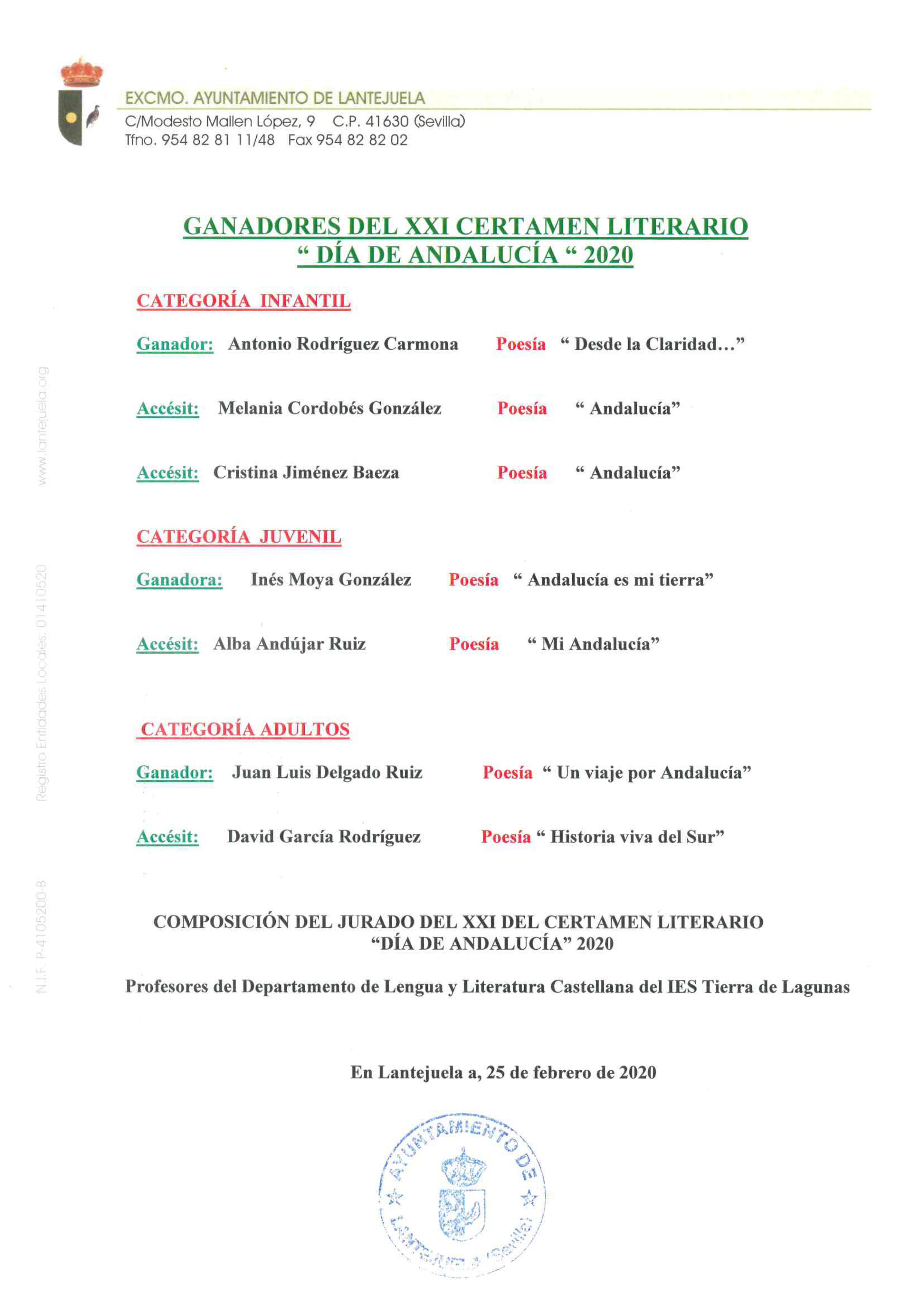 Ganadores del XXI Certamen Literario Día de Andalucía 2020