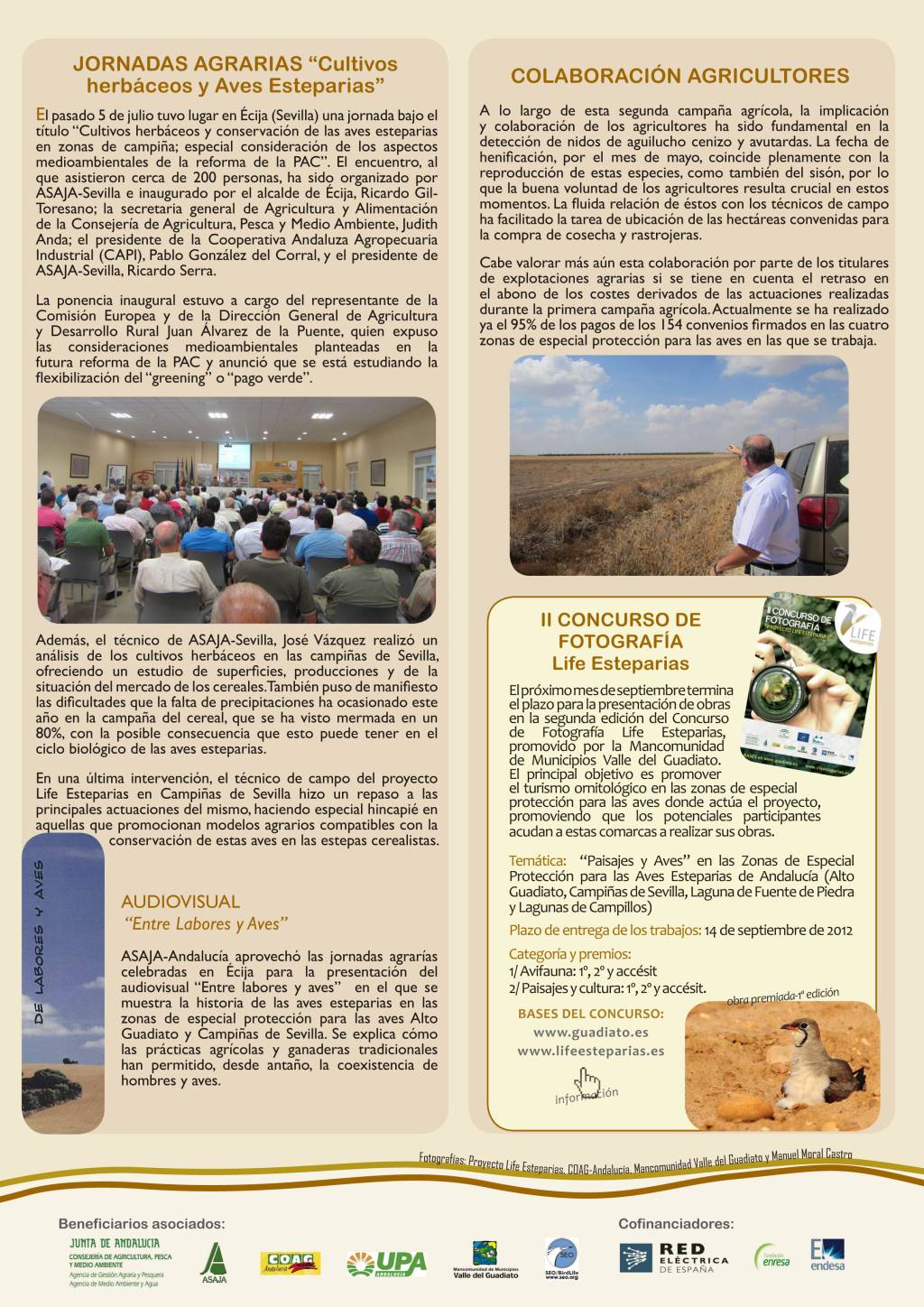 El Libro Rojo de los Vertebrados Amenazados de Andalucía indica que el 82% de las aves esteparias no paseriformes y el 43% de los paseriformes están catalogadas con algún nivel de riesgo en Andalucía. Muchas de ellas viven en las zonas de especial protección para las aves sobre las que opera este proyecto: Alto Guadiato (Córdoba), Campiñas de Sevilla, Laguna de Fuente de Piedra y Lagunas de Campillos (Málaga).