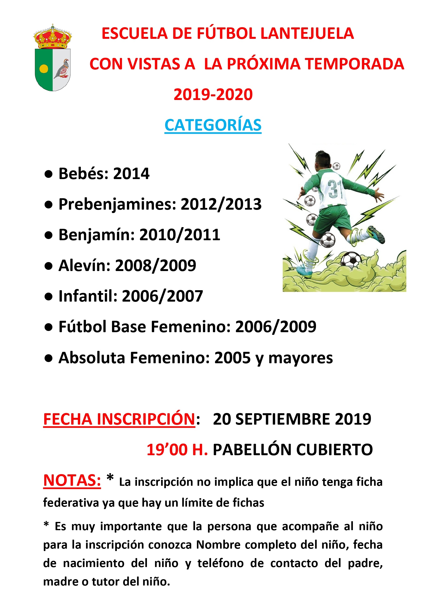 Escuela de Fútbol de Lantejuela. Inscripción abierta